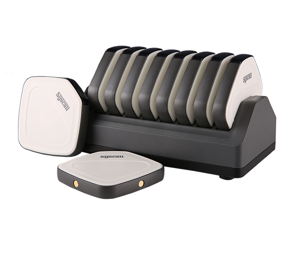 Kolejny nowy system pagerowy klienta zaprojektowany na bazie rozwiązania SGP-100R z wykorzystaniem najnowszych technologii i trendów w systemach przywoławczych. Inspiracją dla Diamond Guest Pager był diament oraz idealny jego kształ z wyraźnym wyeksponowaniem miejsca na logo. Niewielki pager mieści się w dłoni i posiada wszystkie funkcje pozostałych pagerów klienta. Pagery możesz wsuwać w kieszeń dowolną stroną do poziomej stacji zasilającej, dlatego nie musisz zastanawiać się czy pager jest dobrze wsunięty i się ładuje. Zwiększona została pojemność akumulatorów, dlatego pager może pracować ponad 20h bez zasilania. Obudowa słupka zasilającego pagery jest kolorze srebrnym. Urządzenia posiadają wbudowany system anty-kradzieżowy, który aktywuje się w momencie wyjścia poza strefę. Pager przywołujemy z transmitera GP-1000T lub GP-2000T wybierając odpowiedni numer pagera. Kiedy zamówienie klienta jest gotowe do odbioru, obsługa przywołuje pager, który wibruje i/lub wydaje dźwięk i/lub świecą się światła LED.