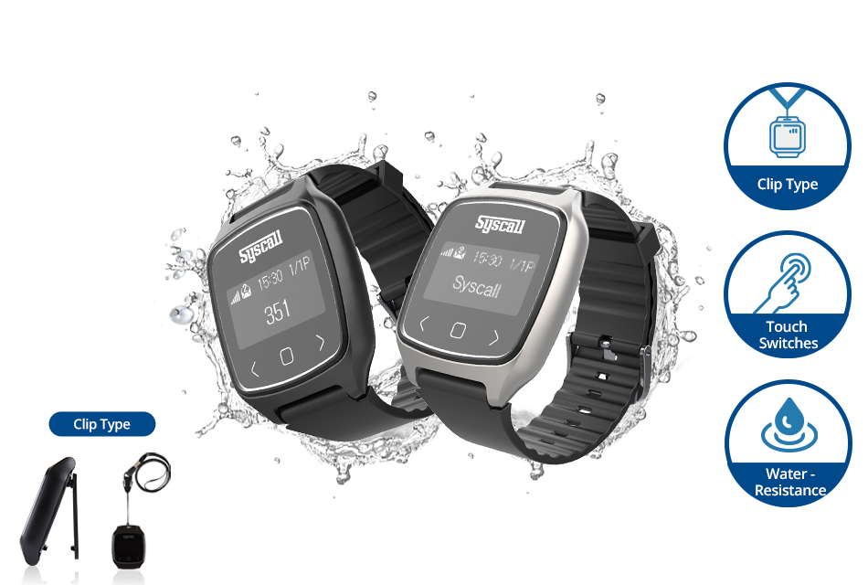 Wodoodporny pager SB-700 o wyjątkowej trwałości. Nawigacja i konfiguracja pagera za pomocą 3 przełączników dotykowych.